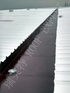原钢屋面在板与板、板与泛水收边等节点接缝处因长期热胀冷缩出现很大缝隙,有的屋脊、螺钉、铆钉已损坏,出现漏水现象。