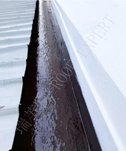 该厂房为轻钢屋面,双坡钢板内天沟。因使用年久,屋面板已经出现严重锈蚀,如不及时进行维修,后果不堪设想。