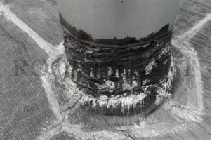 B、在已预处理好的区域涂第一层RFT-Conproof涂料,当其仍湿润时,把缝织聚酯布直接铺于其上,用刷子将其刷平,确保缝织聚酯布不起泡、不起皱,缝织聚酯布搭接宽度一般以缝织聚酯布上的红线为准(约5-10㎝;