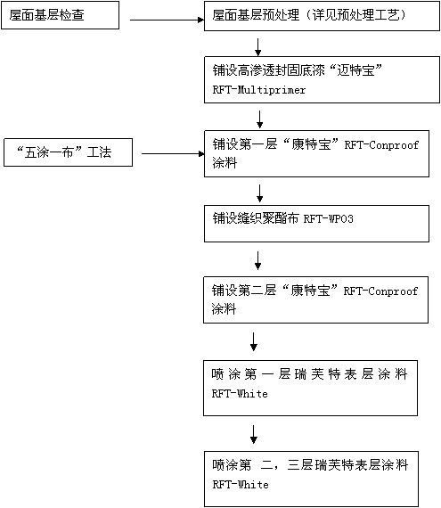 u 在上述修补部位铺设智诚防水系统如下(以下简称三涂一布工艺):