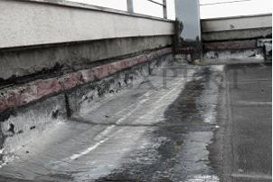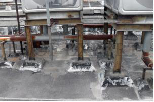 该案例建筑为汽车零配件行业的巨头——美国德尔福公司中国研发总部,地址位于上海著名的外高桥保税区。屋面面积约10000平方,屋面竣工于2006年,建筑分一期和二期部分,屋面原采用SBS防水卷材。屋面板为钢承板(即所谓的DECK板),即在钢承板上浇筑混凝土,其混凝土厚度为15㎝左右。由于使用范围为工业用途,屋面跨度较大,室内有大型实验室设备,屋面震动变形大,屋面有大量伸出的管道设备基础等,而这些都是卷材屋面防水应用最难处理的地方,也是最容易出现渗漏的部位。