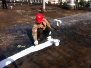 2)所有节点和预处理部位在完成相应预处理工艺后, 如对屋面伸出排气孔、落水口、缝隙连接处、拐角处,女儿墙和屋面结合部位等均用RFT-WP01智诚防水系统进行预先单独处理,其工艺如下: